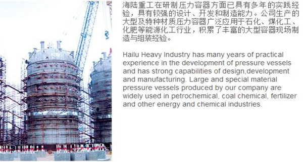 蘇州海陸重工股份有限公司位于江蘇省張家港市開發(fā)區(qū),是國內(nèi)一流的節(jié)能環(huán)保設(shè)備的專業(yè)設(shè)計(jì)制造企業(yè),目前并已初步形成鍋爐產(chǎn)品、大型壓力容器、核電設(shè)備、低溫產(chǎn)品、環(huán)保工程共同發(fā)展的業(yè)務(wù)格局。公司創(chuàng)建于1956年,注冊(cè)資本51640萬元,占地面積近50萬平米。公司下設(shè)八個(gè)控股子公司,一個(gè)余熱鍋爐研究所,在瑞士、北京、武漢、南京、上海、杭州、廣州等地設(shè)立分支機(jī)構(gòu),擁有雄厚的研發(fā)實(shí)力。公司秉承“科技領(lǐng)航、業(yè)界先鋒”的發(fā)展理念,注重研究廢熱、余熱利用和環(huán)境保護(hù)相結(jié)合的新技術(shù)研發(fā),自主設(shè)計(jì)能力居同行前列;公司承擔(dān)過國家863計(jì)劃,江蘇省科技成果轉(zhuǎn)化專項(xiàng)資金,榮獲國家科技進(jìn)步二等獎(jiǎng),產(chǎn)品擁有核心自主知識(shí)產(chǎn)權(quán)并取得專利50多項(xiàng);公司推行國際先進(jìn)的管理體系標(biāo)準(zhǔn)和認(rèn)證,擁有 A級(jí)鍋爐制造許可證,A1、A2、A3級(jí)壓力容器設(shè)計(jì)和制造許可證,取得了民用核承壓設(shè)備制造資格許可證、美國機(jī)械工程師學(xué)會(huì)(ASME)“S”、“U”鋼印,通過了ISO9001質(zhì)量體系認(rèn)證、健康體系認(rèn)證和14000環(huán)境體系認(rèn)證;公司設(shè)備先進(jìn),裝備精良,專業(yè)嚴(yán)謹(jǐn)?shù)闹圃炖砟畲蛟斐銎焚|(zhì)非凡、質(zhì)量一流的“海陸”品牌聲譽(yù)。